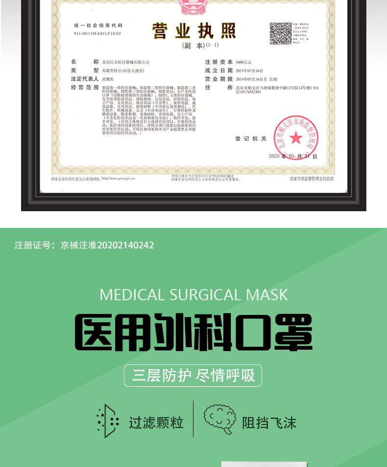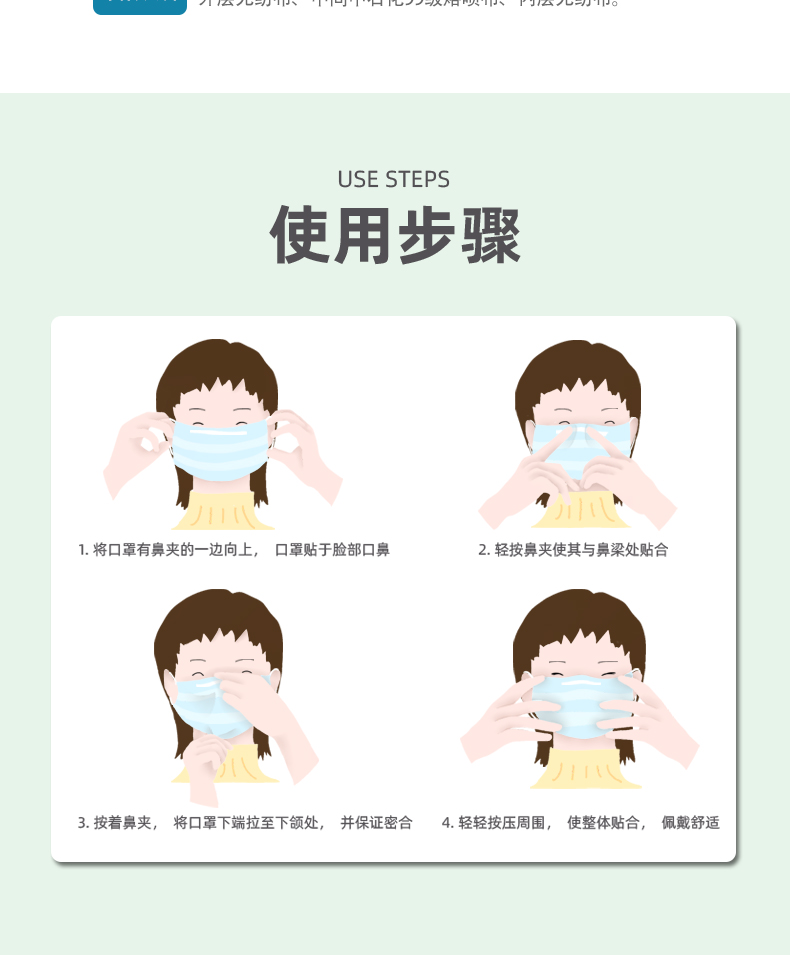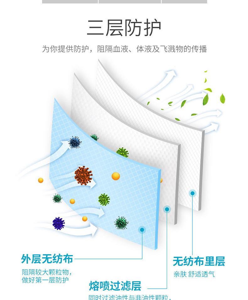 【適用范圍】醫(yī)用外科口罩適用于醫(yī)務(wù)人員或相關(guān)人員的基本防護(hù),以及在有創(chuàng)操作過(guò)程中阻止體液和噴濺物傳播的防護(hù)。